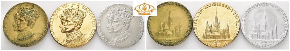 Kong Haakon VII og Dronning Maud, Kroningen 1906. Lot 3 medaljer