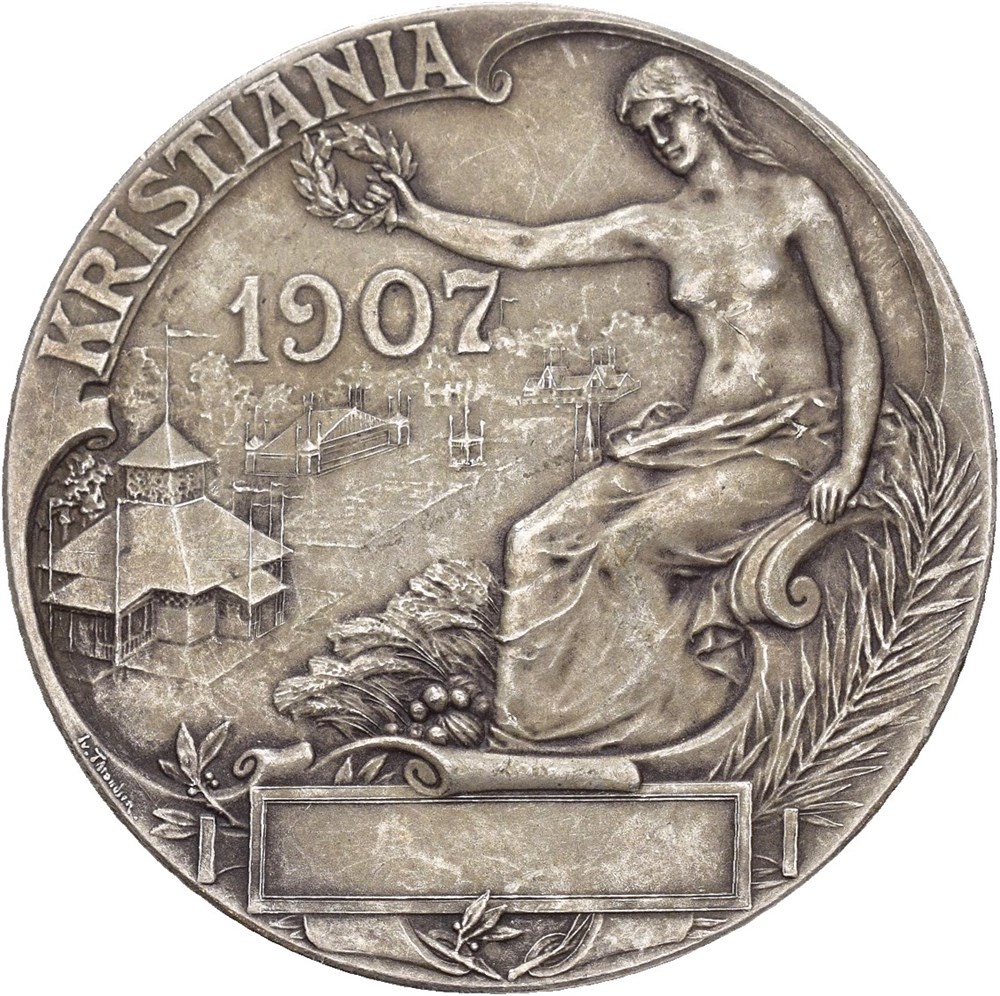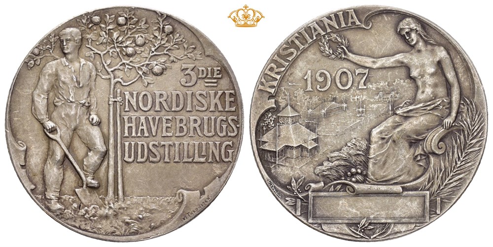 3die Nordiske Havebrugs Udstilling Kristiania 1907. Throndsen. Sølv 35 mm; 20 g