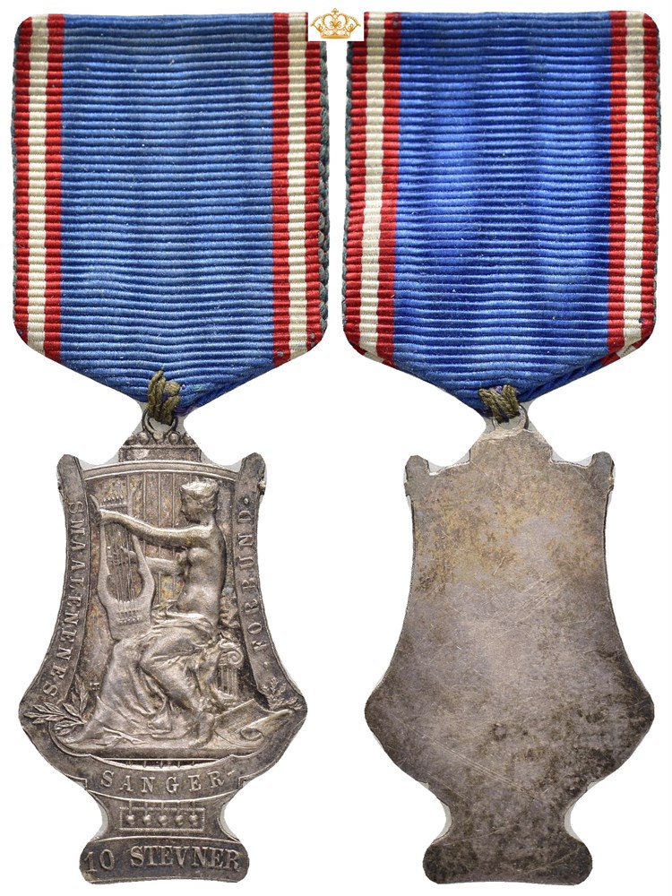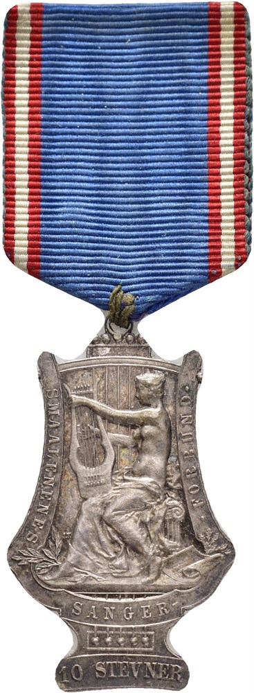 Smaalenenes Sangerforbund, med bånd. Throndsen. Ensidet merke i sølv 22x35 mm; 5,15 g