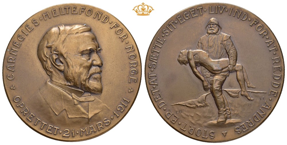 Carnegies Heltefond for Norge. Oprettet 1911. Throndsen. Bronse 40 mm; 20,43 g