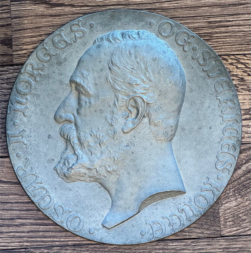 Ensidig rund plakett med portrett av Kong Oscar II.