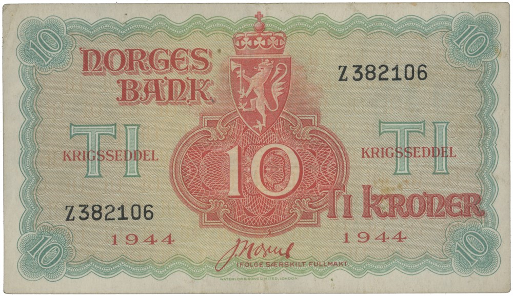 10 kroner 1944. Z382106.