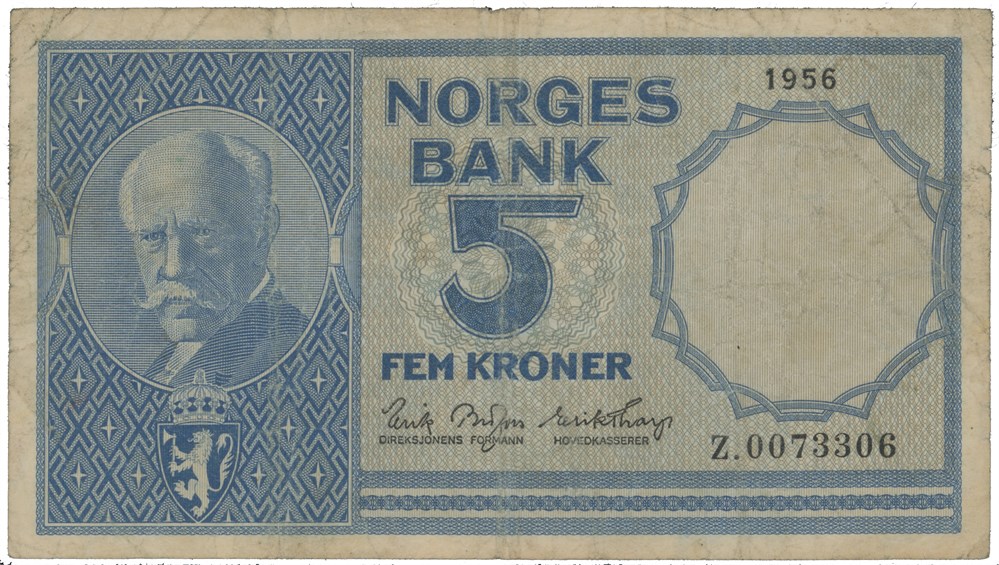 5 kroner 1956. Z.0073306. Erstatningsseddel.