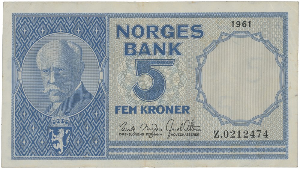 5 kroner 1961. Z.0212474. Erstatningsseddel.