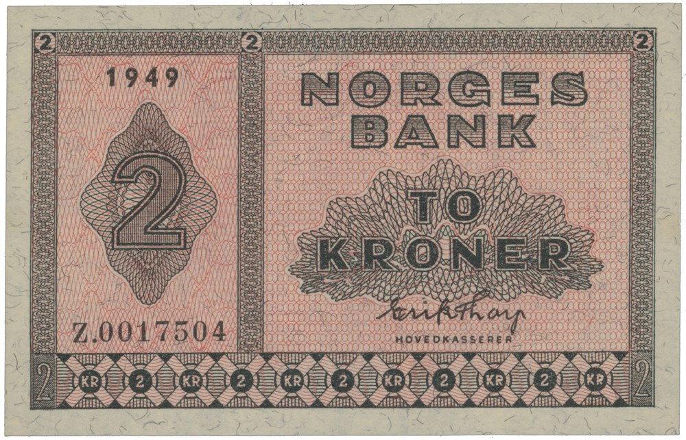 2 kroner 1949. Z.0017504. Erstatningsseddel.
