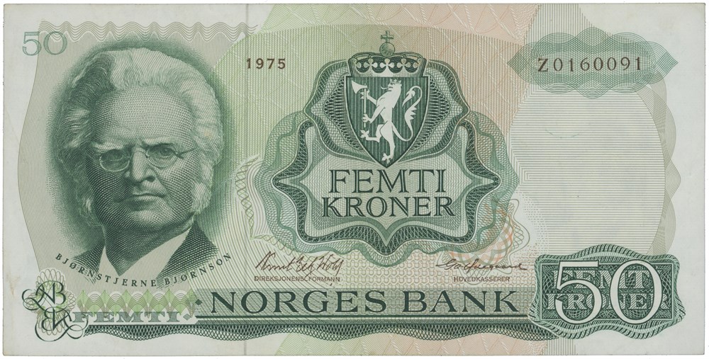 - 50 kroner 1975. Z0160091. Erstatningsseddel. (14898828)