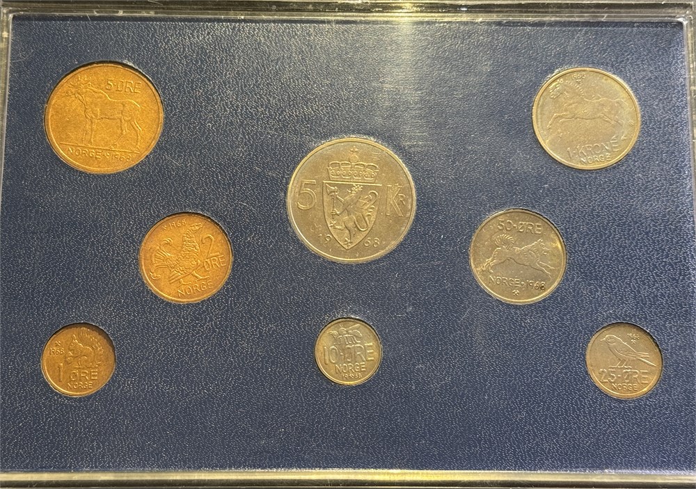 Myntsett 1968 hardplast, svært pent sett med tydelig 2-øre 1968