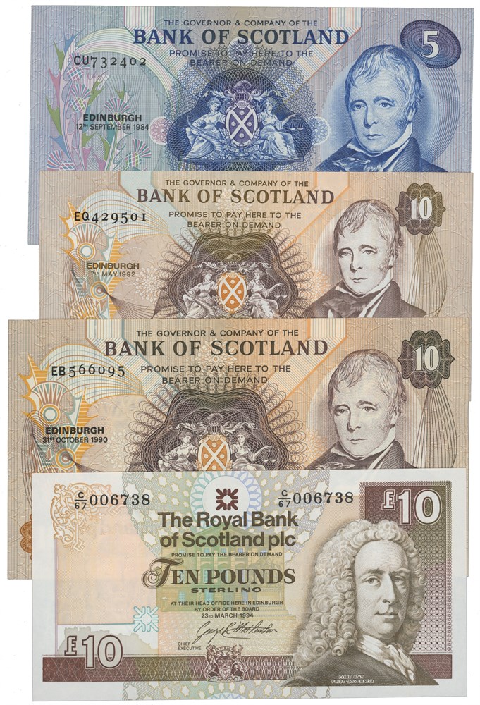 Lot 4 pcs. 5 pounds 1984, 10 pounds 1990, 1992 and 1994.