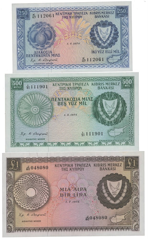 Lot 3 pcs. 250 mil 1974, 500 mil 1974 and 1 pound 1975.