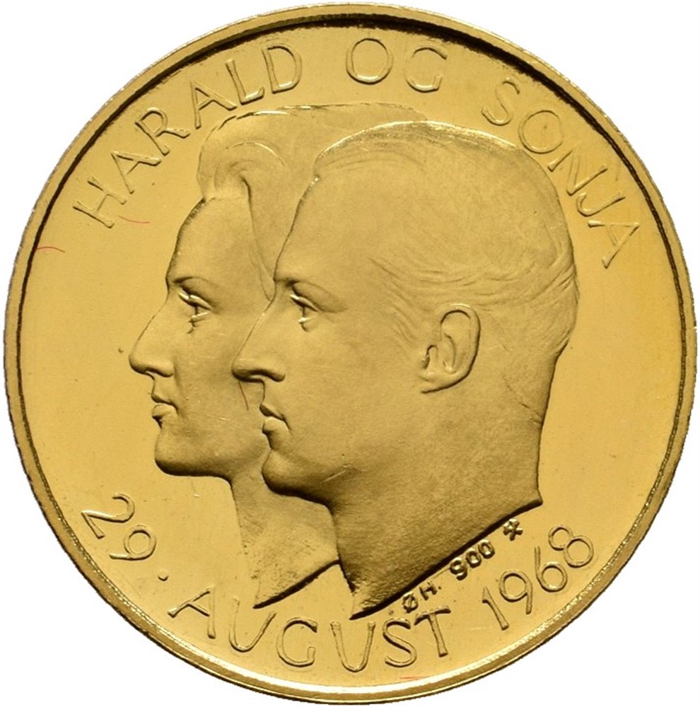 - Harald og Sonjas bryllup 1968. Hansen. Gull. 3,5 g. 900/1000. 20 mm (15010869)