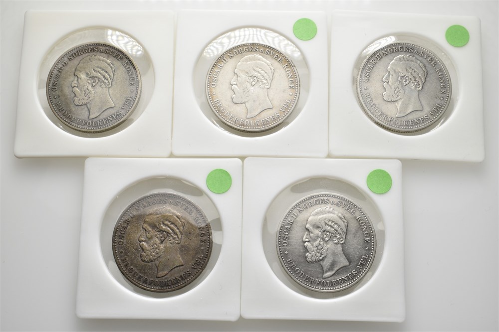 - Lot 5 stk. 2 kroner 1897, 1898, 1900, 1902 og 1904 (15011088)