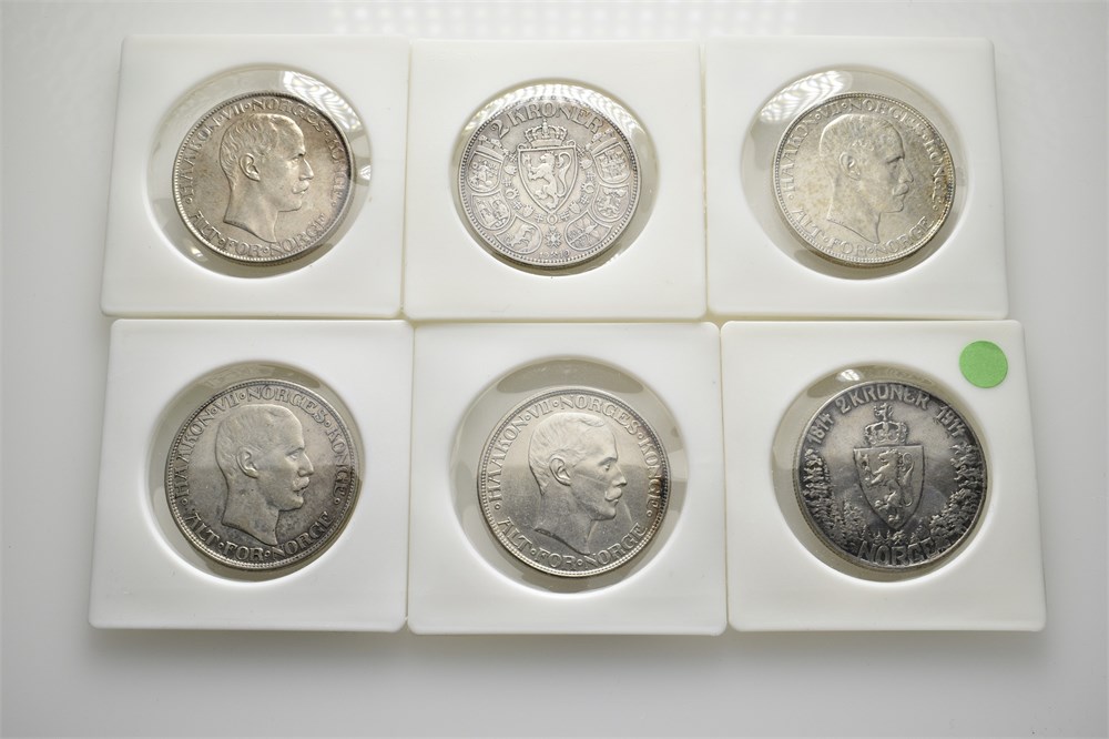 - Lot 6 stk. 2 kroner 1908, 1910 (2), 1912, 1913 og 1914 jub. (15011199)