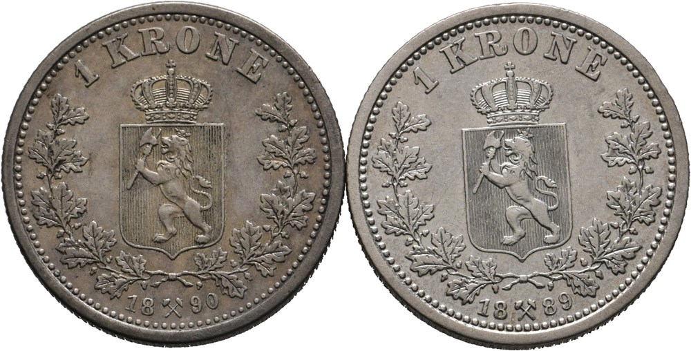 - Lot 2 stk. 1 krone 1889 og 1890 (15011384)