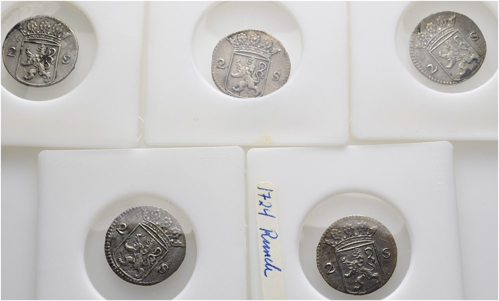 Holland, lot 5 stk. 2 stuiver 1724 (Ex. Rundefunnet)