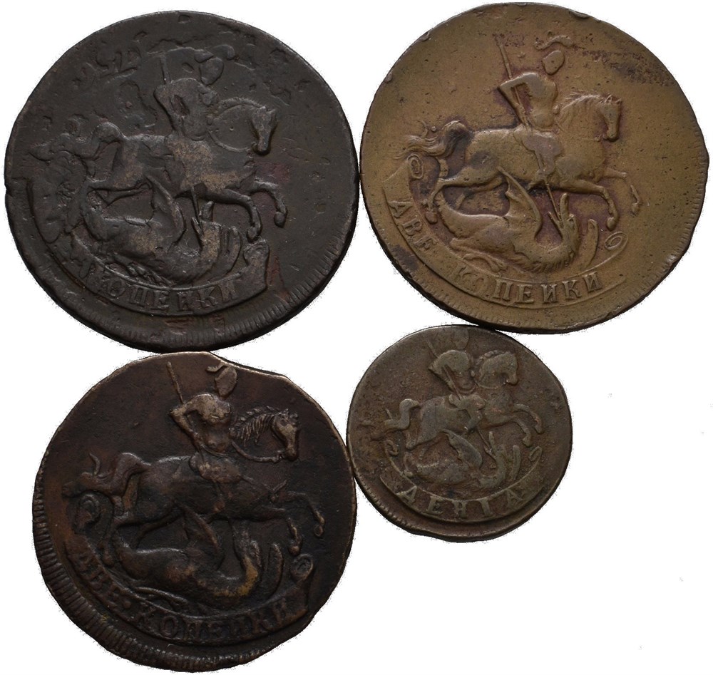 - Elizabeth, lot 4 stk. 2 kopek 1757 (3) og denga 1760 (15013939)