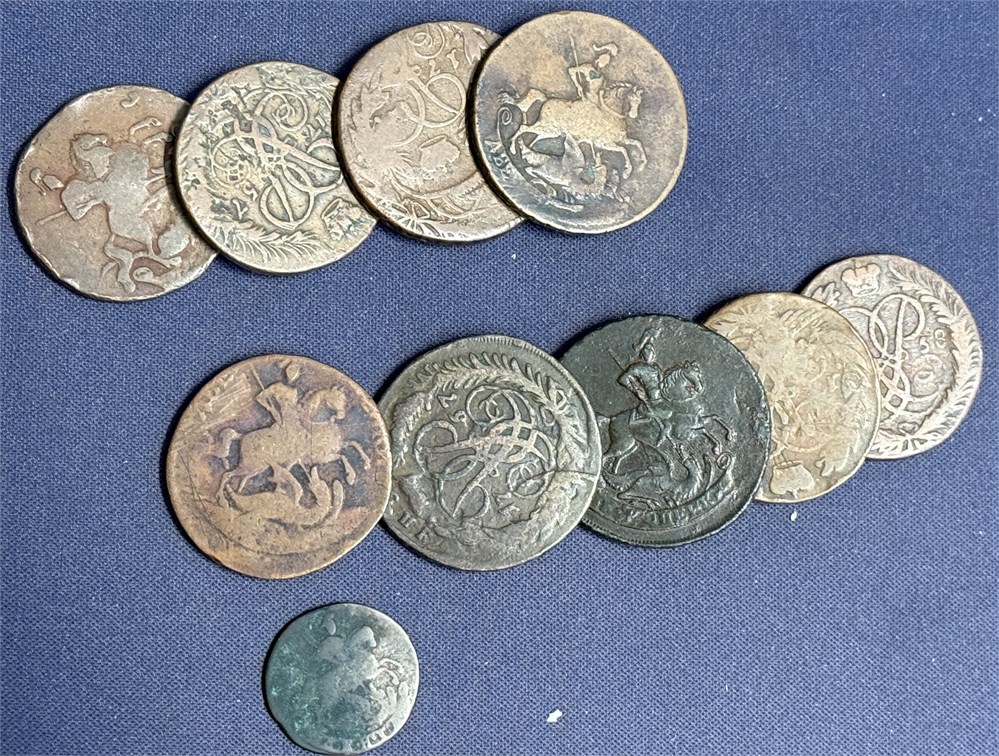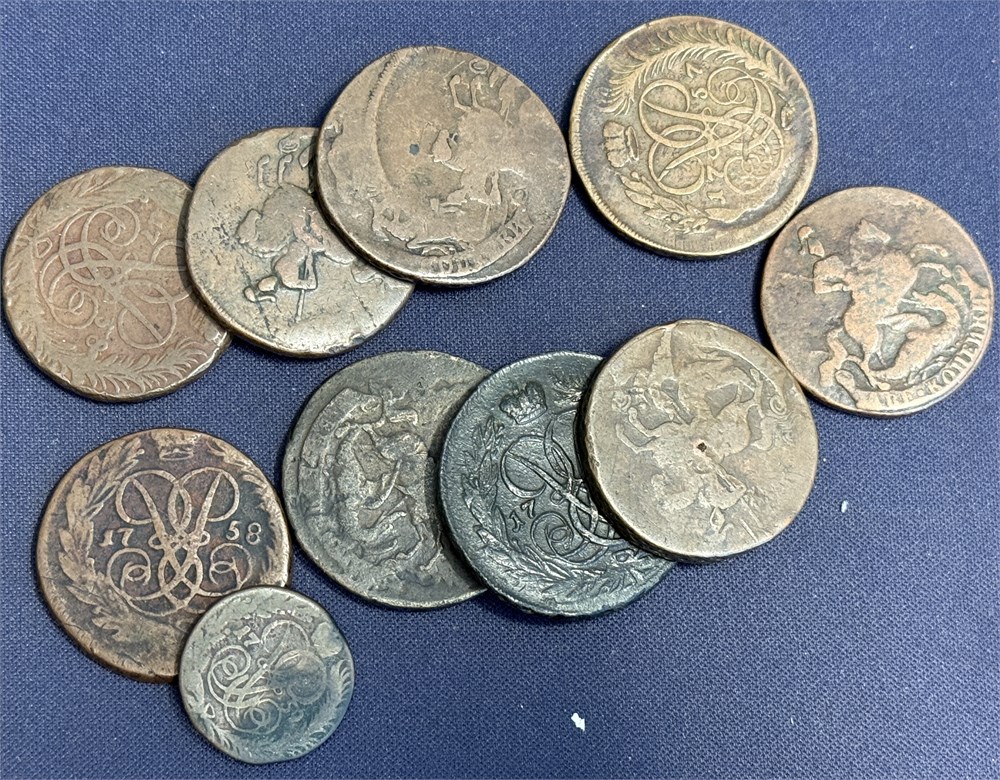 Elizabeth, lot 10 stk. 2 kopek (9) og denga 1759