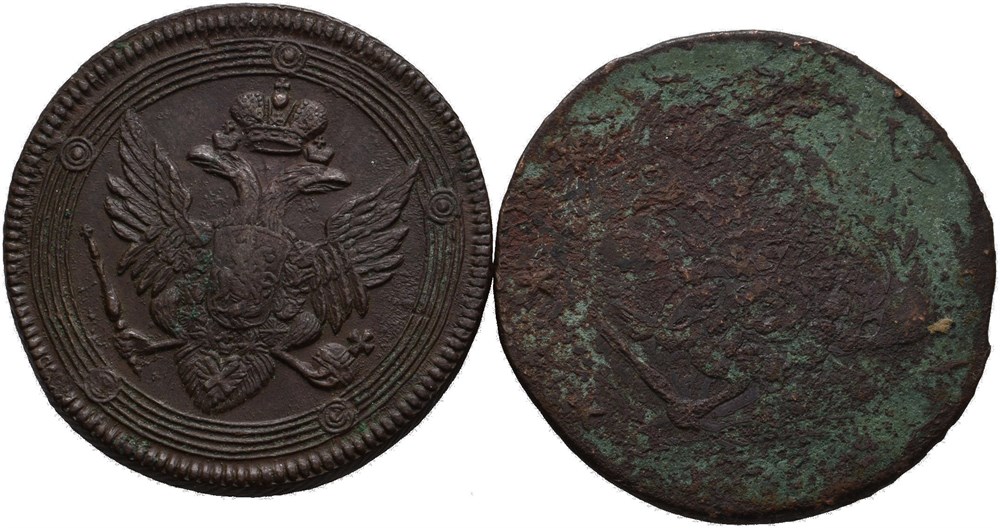 Lot 2 stk. Peter III, 10 kopek 1762 og Alexander I, 5 kopek 1804 EM
