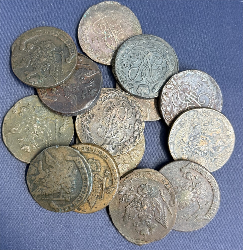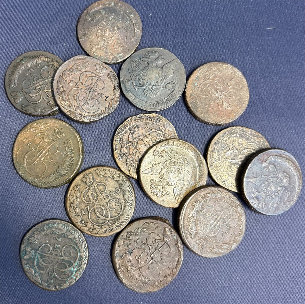 - Lot 14 stk. 5 kopek. 1 stk. Elizabeth, 1760 og 13 stk. Catharina II, EM (15014335)
