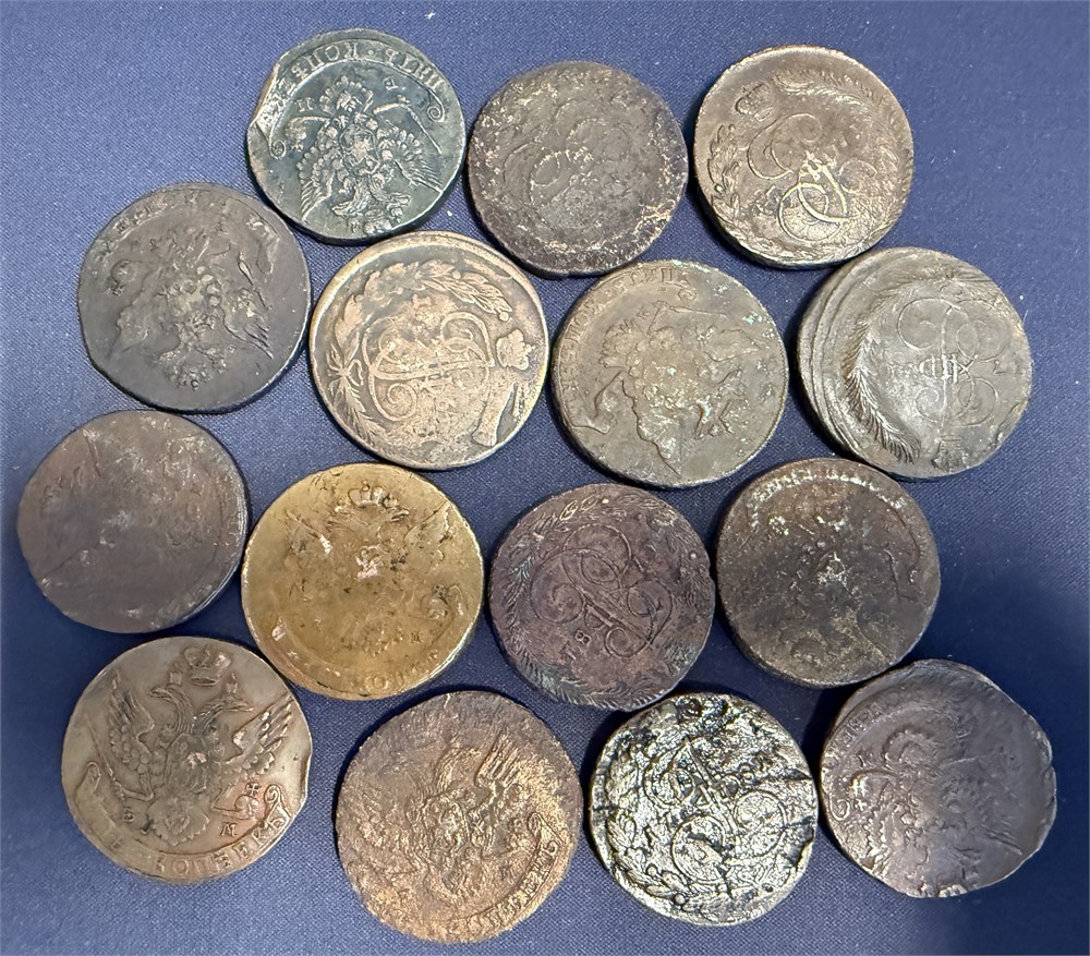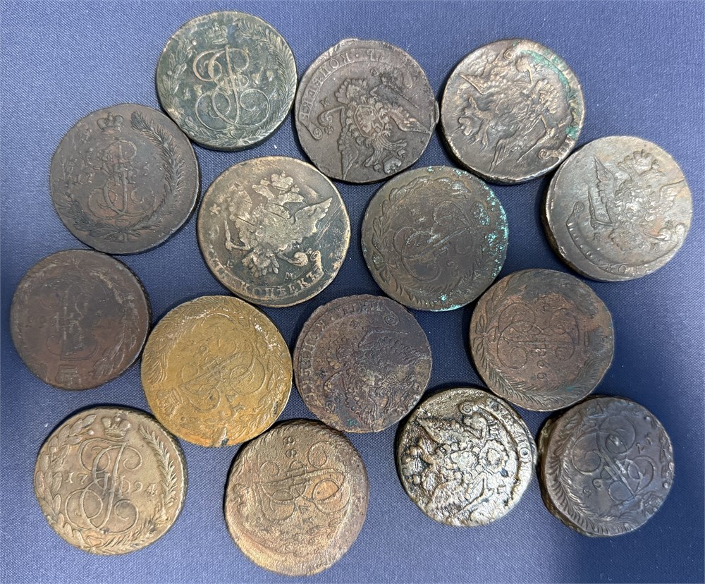 - Catharina II, lot 15 stk. 5 kopek EM (Ekaterinburg), 1763, 1764, 1765 (3), 1766, 1771 (3), 1779, 1781 (2), 1788 (2) og 1794 (15014371)