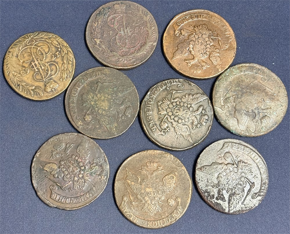 - Catharina II, lot 9 stk. 5 kopek MM (Moskva), 1763 (3), 1764, 1765, 1766 (2), 1768 og 1788 (15014443)