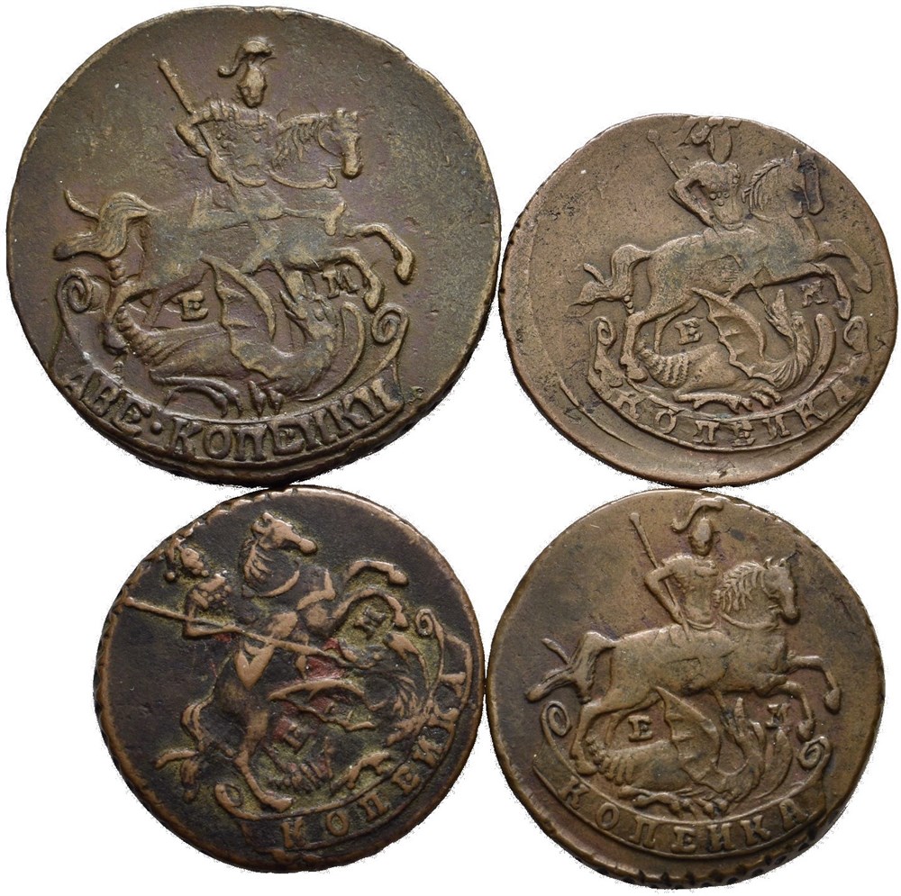 - Catharina II, lot 4 stk. 2 kopek 1790 EM, kopek 1794 EM og 1795 EM (2) (15014515)