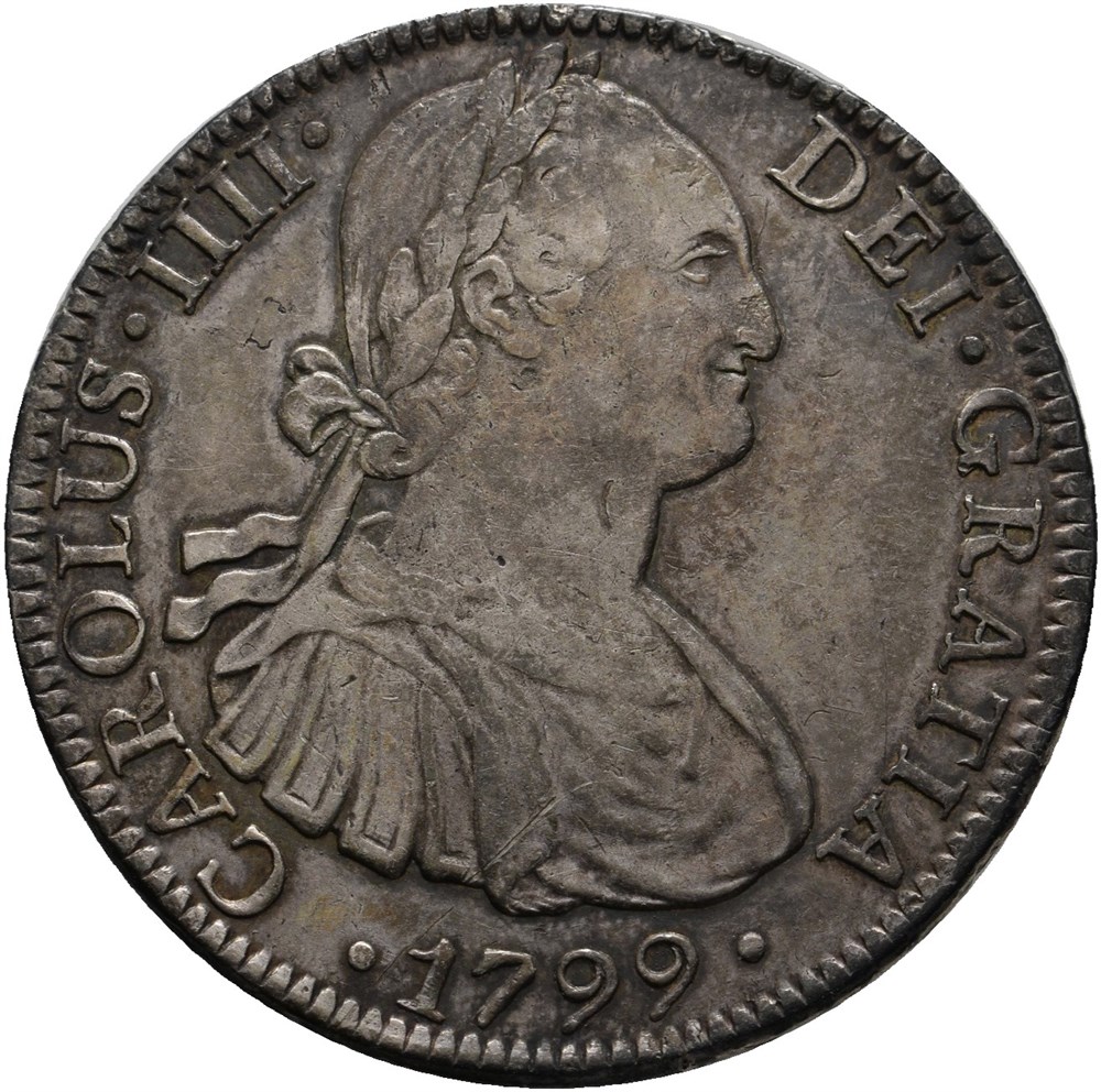 Carlos IV 1788-1808. AR 8 reales 1799 Mo FM, Mexico City Mint, 26,92 grams. Beautifully toned.