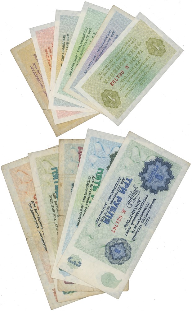 Trust Arcticugol. Lot 11 pcs. 1, 2, 3, 5, 10 and 20 kopeks, 3, 5, 25, 50 and 100 roubles 1979.