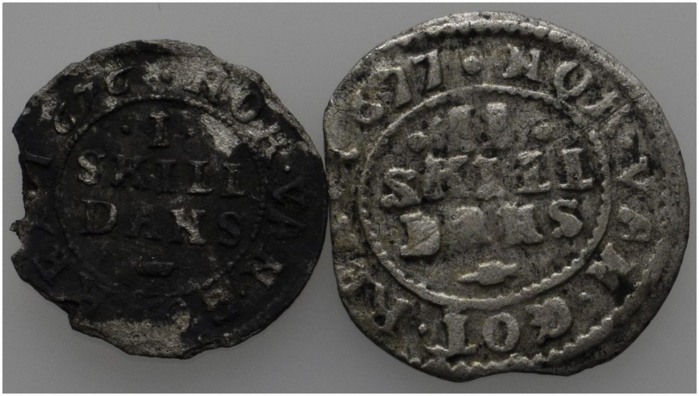 Skillingslott, 2 skilling 1677, 1 skilling 1676