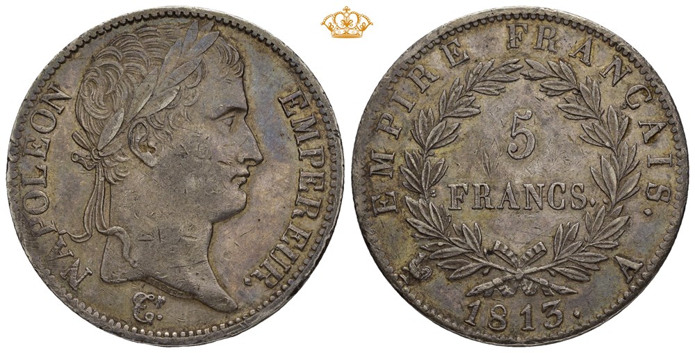 Napoleon I. 5 francs 1813 A, Paris Mint, 25,15 g. Beautiful patina.