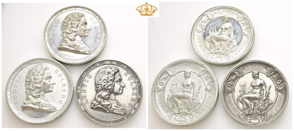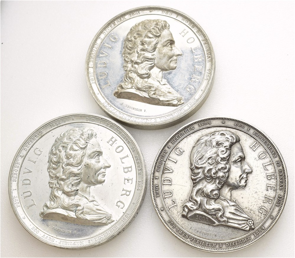 Ludvig Holberg (1684-1754). Lott 3 medaljer. Tinn. 50 mm