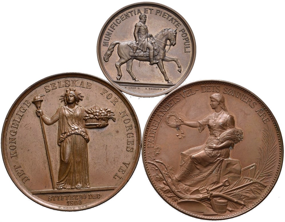 Norges Vel, 1809 x2 samt Avdukningen av rytterstatuen, alle tre i bronse
