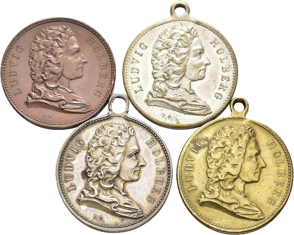 Ludvig Holberg (1684-1754). Lott 4 medaljer 21 mm