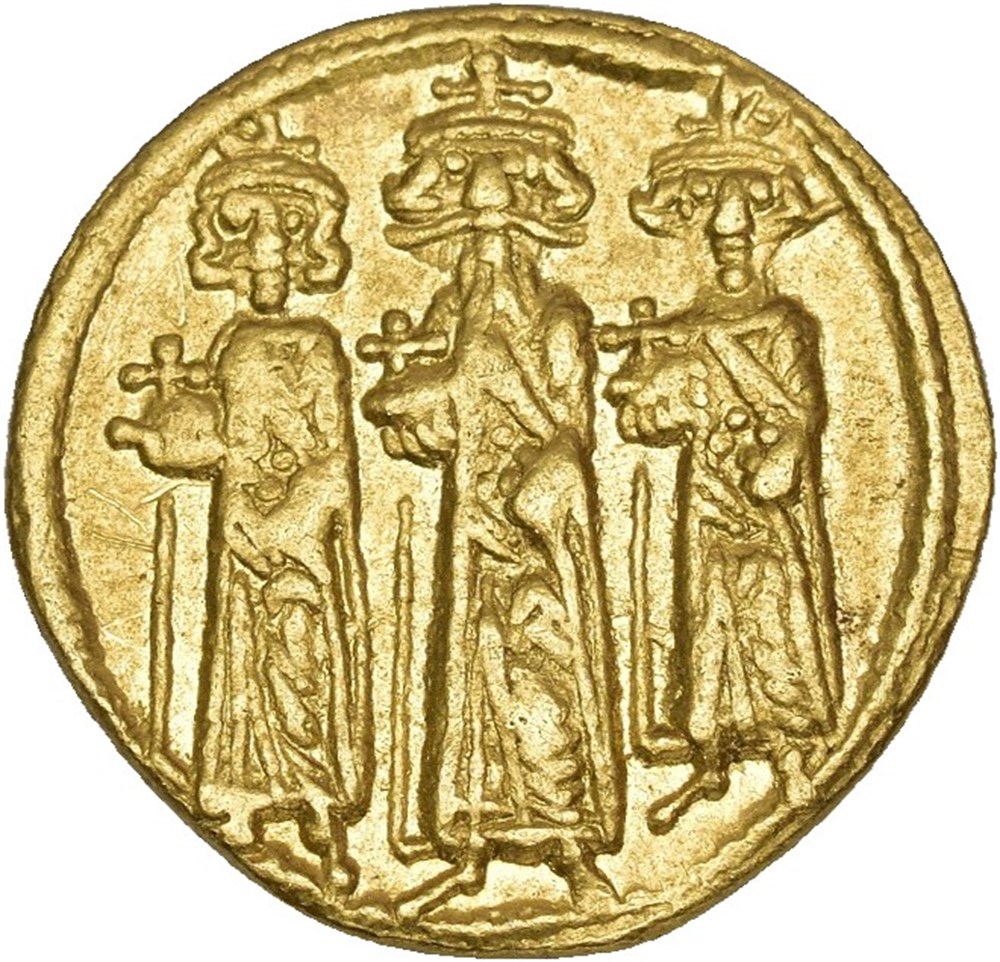 AV Solidus, dated IY 12 (= 638/9 AD)
