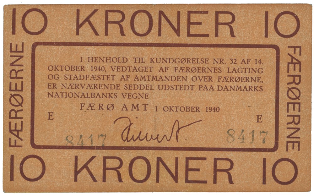 10 kroner 1940 E. No. 8417. Hilbert