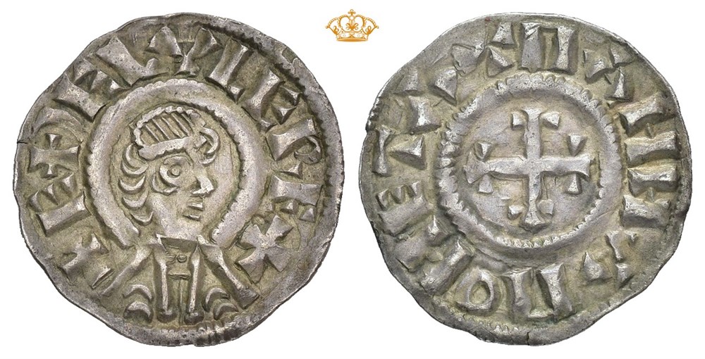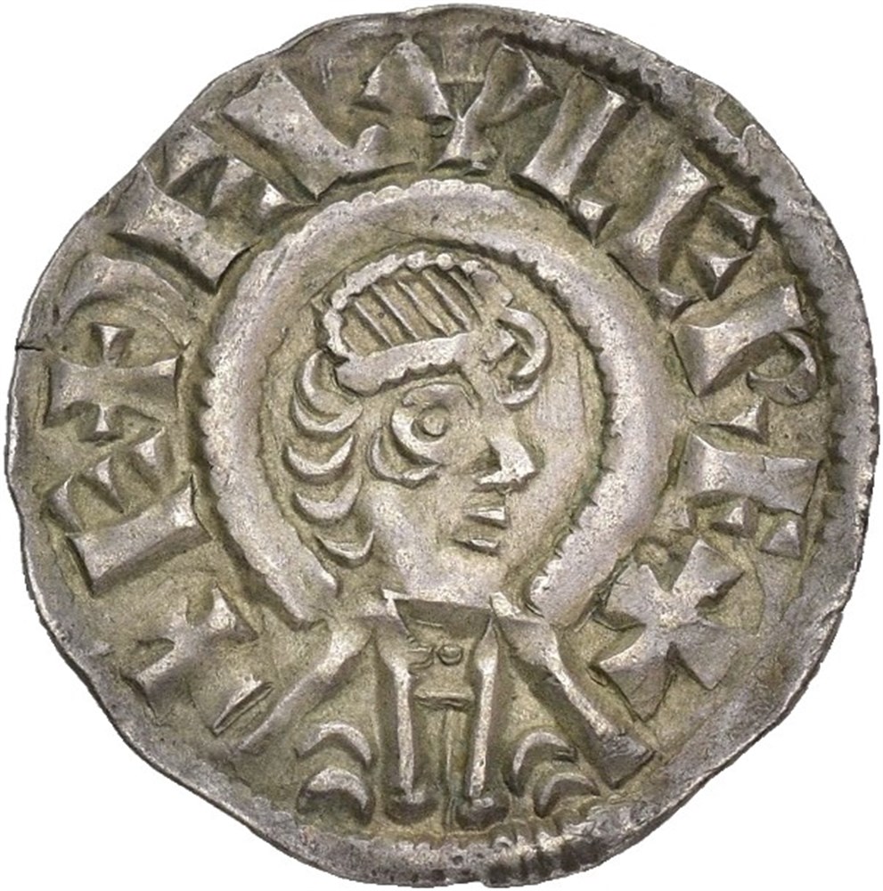 Penny, circa 844-849, Canterbury. 1.21 g). Portrait / Cross Crosslet type. Manna, moneyer. + EÐELVLF RE+ / + MAHHA MOHETA. Nicely toned. Very rare and with an impressive and long provenance.