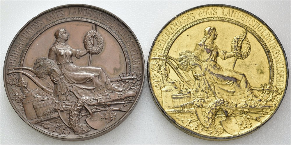 Hedemarkens Amts Landhusholdningsselskab. Bronse og forgylt bronse 50 mm