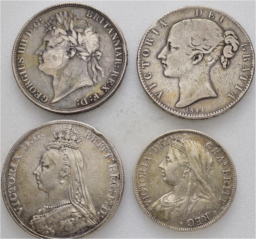 Lot. Crown 1821, crown 1844, crown 1892 & 1/2 crown 1896