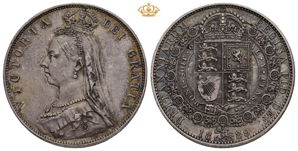 1/2 crown 1889, 14,18 g. Beautiful patina.