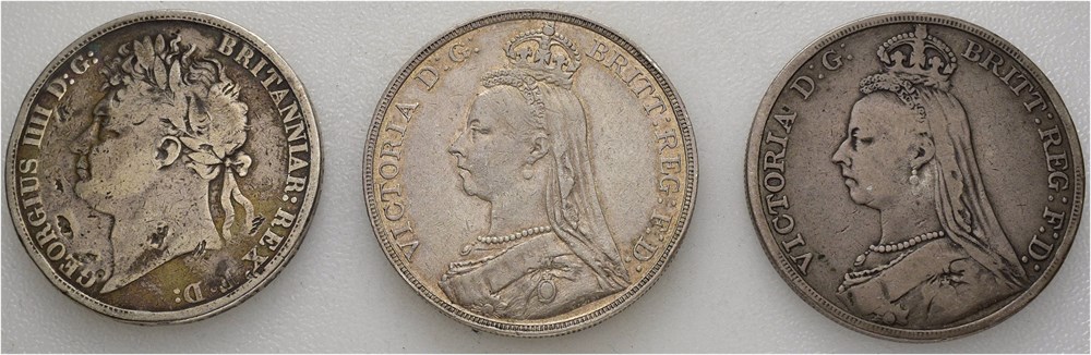 Lot. Crown 1822 (damaged), 1889 & 1892. Various condition.