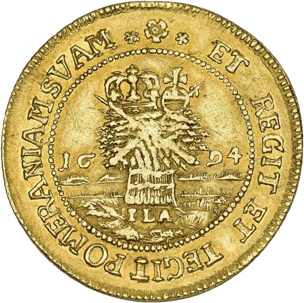 2 dukat 1694, Stettin. 6,9 g. Svært sjelden.