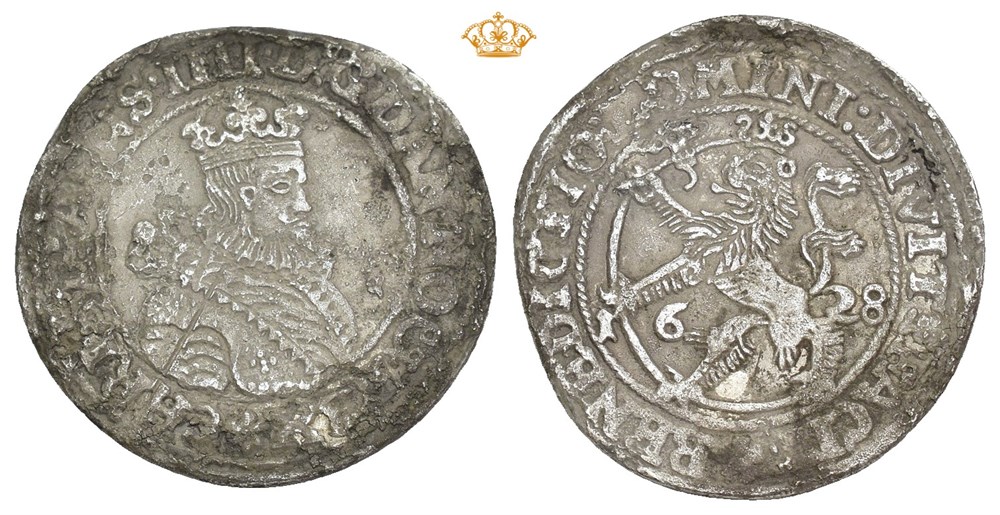1/8 speciedaler 1628 S.30 2,93 g. Korrodert, ripe advers / Corroded, scratch obverse.