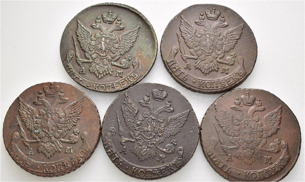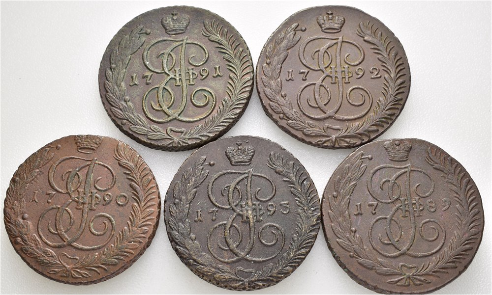 - Lot. 5 kopek 1789, 1790, 1791, 1792 & 1793 AM (15164647)
