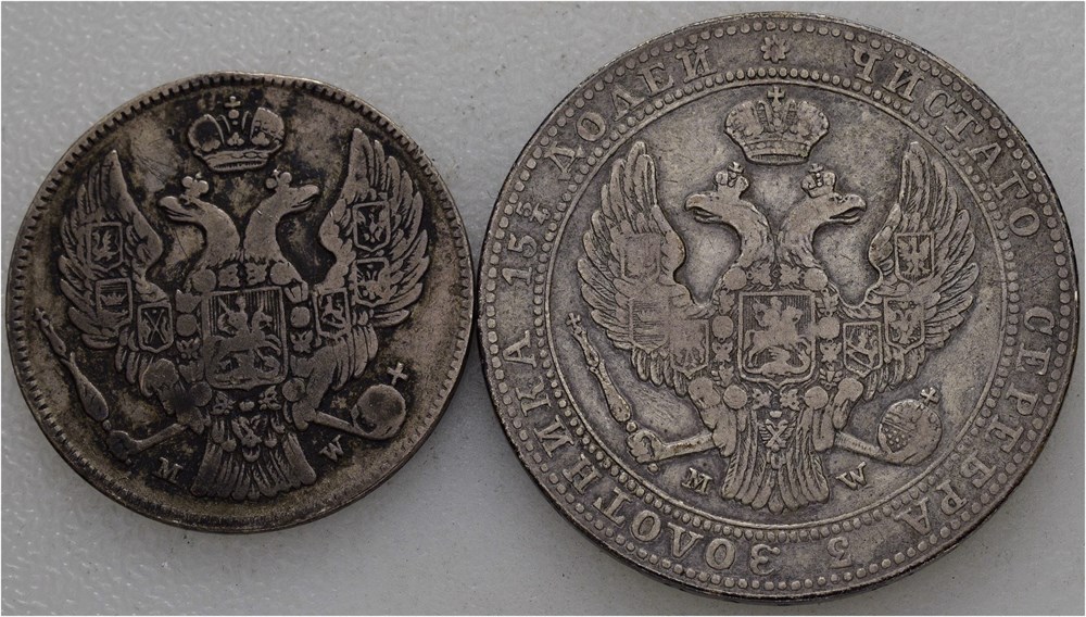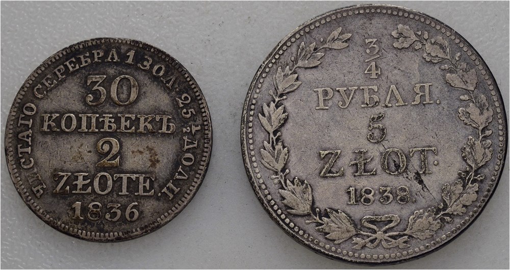 2 zloty 1836 & 5 zloty 1838, issue for Poland.