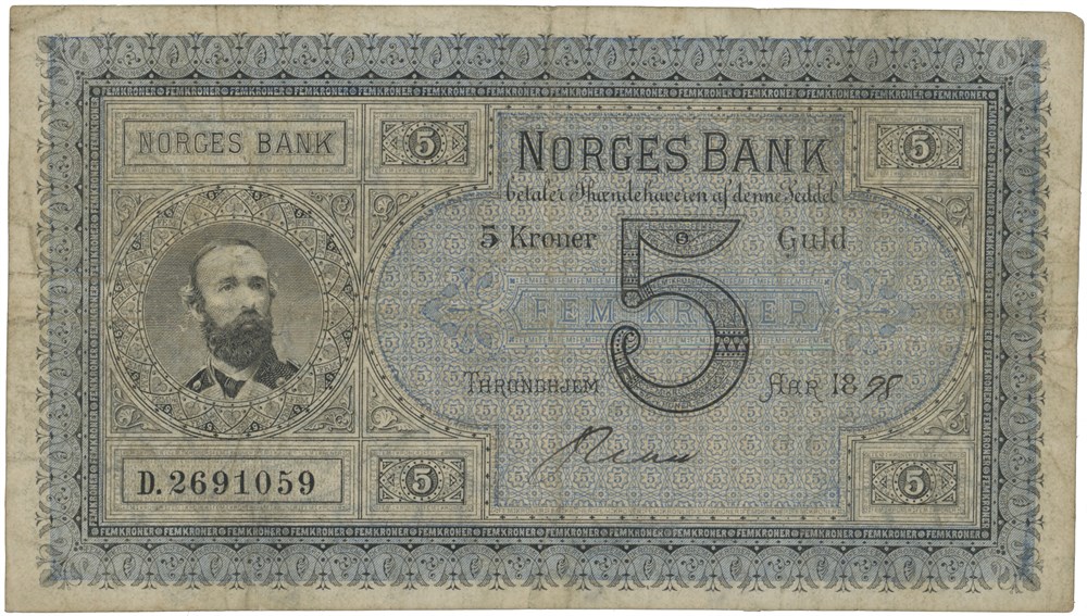 5 kroner 1898. D.2691059. Signert Rian.