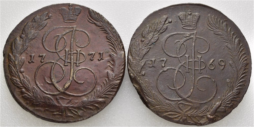5 kopek 1769 (48,38 g) & 1771 (46,62 g) EM.