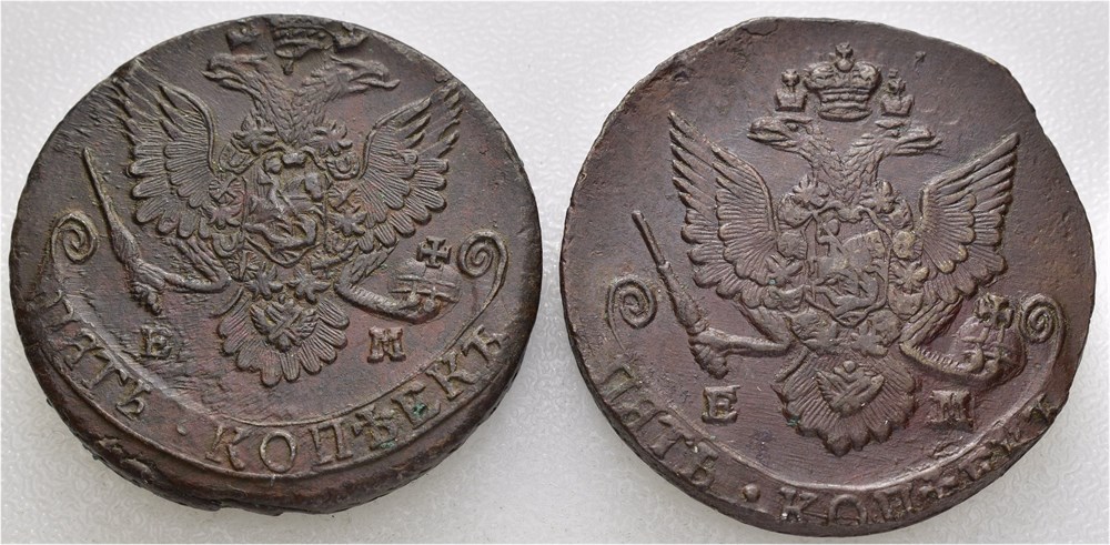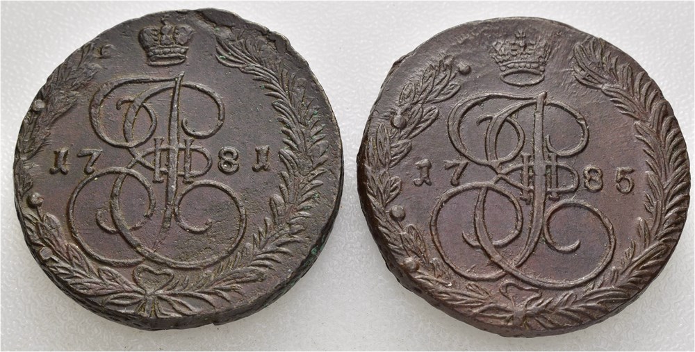 5 kopek 1781 (51,71 g) & 1785 EM (47,93 g)
