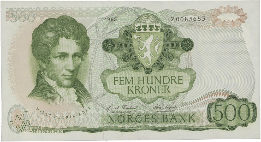 500 kroner 1985. Z0085653. Erstatningsseddel/replacement note.