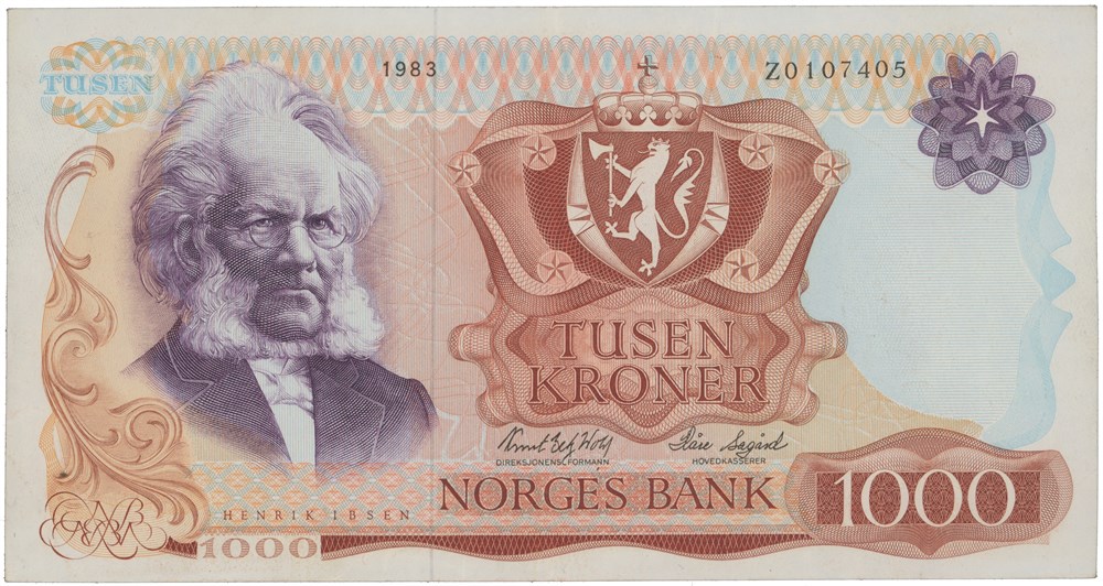 1000 kroner 1983. Z0107405. Erstatningsseddel/replacement note.
