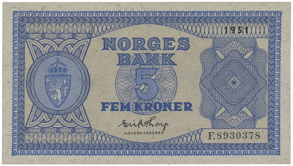 5 kroner 1951. F.8930378.