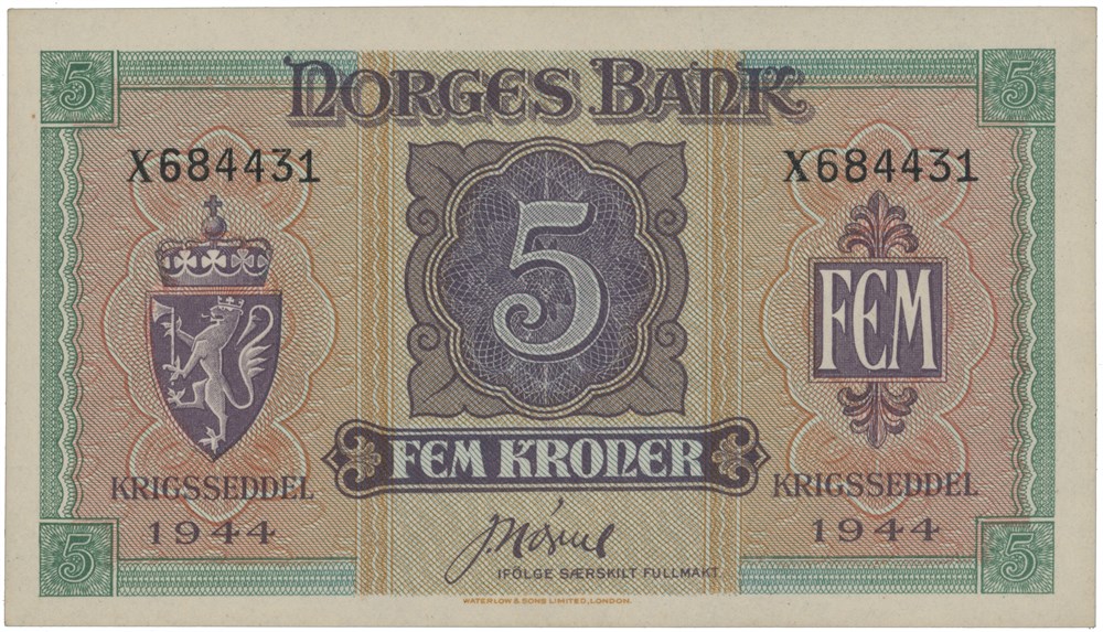 5 kroner 1944. X684431.